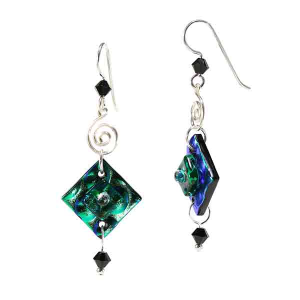 Handmade Fused Glass Earrings by DeVeer Designs - Style MEG in Black. Wire work is Sterling Silver Filled or Gold-Filled.