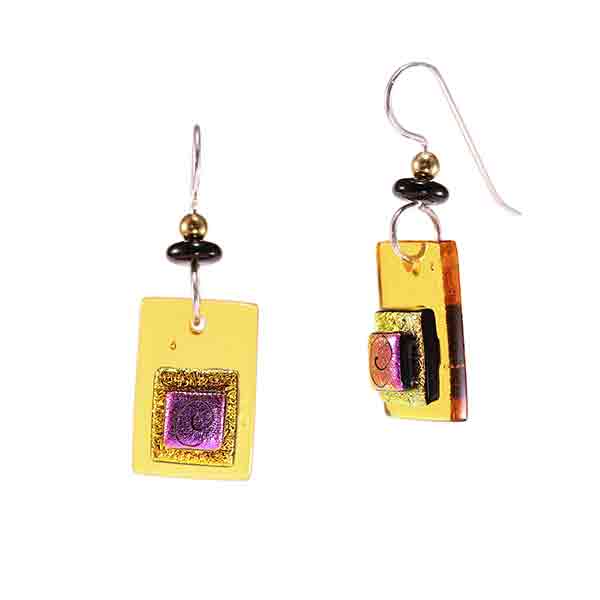 Handmade Fused Glass Earrings by DeVeer Designs - Style BUB in Electric Amber. Wire work is Sterling Silver Filled or