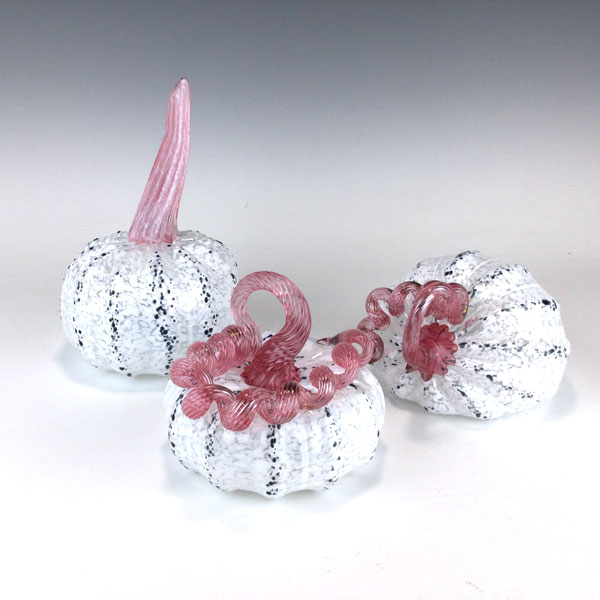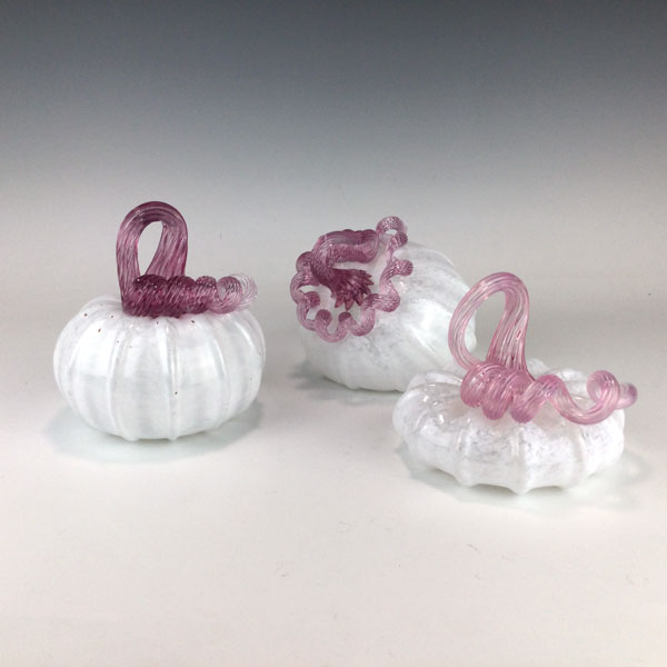 Ballet Slipper Pumpkin Trio by WheatonArts. Delicate and Lovely opaque white pumpkins with baby pink translucent stems. Something a bit