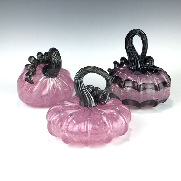 Flamingo Pumpkin Trio by WheatonArts. A Tropical Twist on a traditional glass pumpkin! This set of three bright pink pumpkins