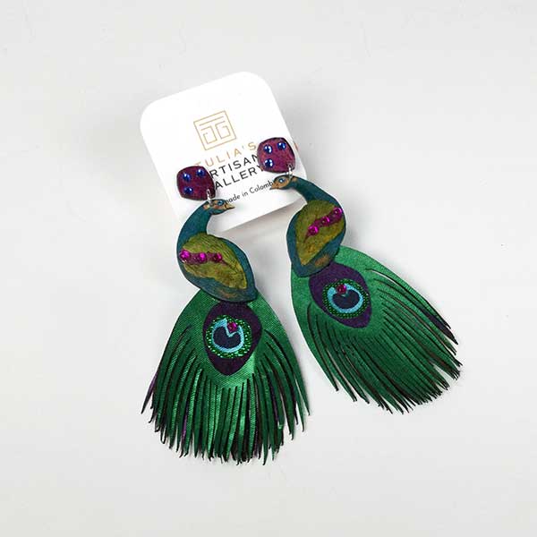Extra Large Peacock EarringsNatural dried gourds are crafted into vibrant, handpainted jewelry by a team of indigenous Mokana artisans. Brilliant