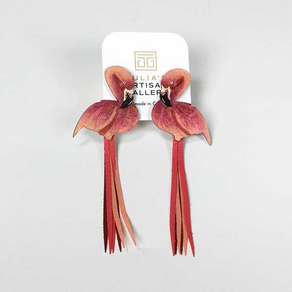 Extra Large Flamingo EarringsNatural gourds are crafted into vibrant, handpainted jewelry by indigenous Mokana artisans. So beautifully painted that the