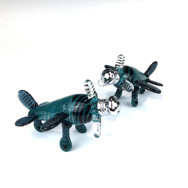 Aqua Airplane Salt & Pepper Shaker by Four Sisters Art Glass. These beautiful flameworked airplane S& P Shakers are perfect