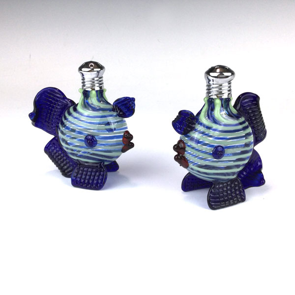Mint & Blue Fish Salt & Pepper Shakers by Four Sisters Art Glass. Perfect for the sealife lover in your