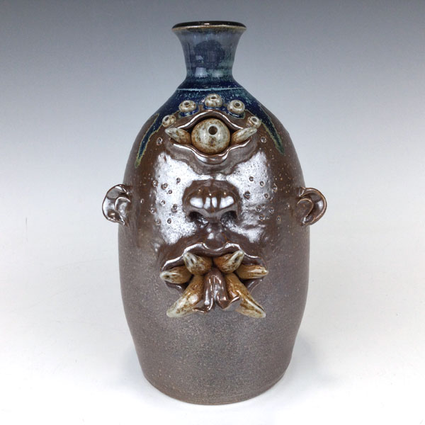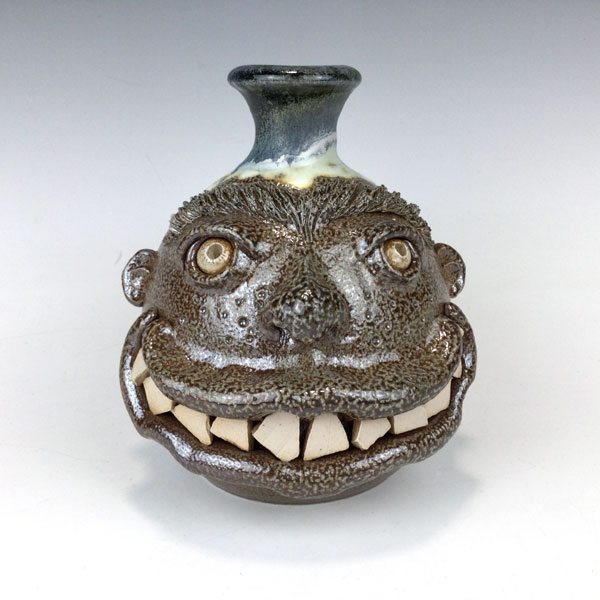 Ugly Face Jug with Warts & Toothy Grin by Phyllis Seidner. This salt glaze pottery jug features a face with