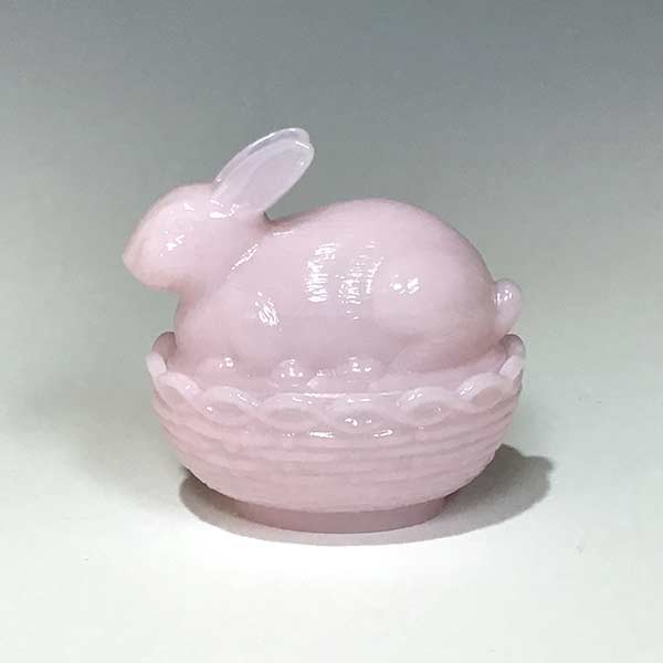 Bunny Basket in Crown Tuscan by Mosser Glass At 4" long x 4" high, this soft pink, two-piece bunny on