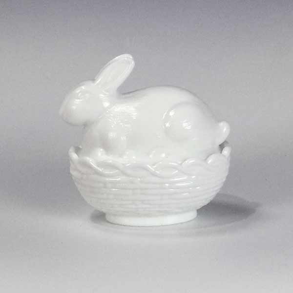 Bunny Basket in Milk White Glass by Mosser Glass This two-piece bunny on basket set in matte white glass is