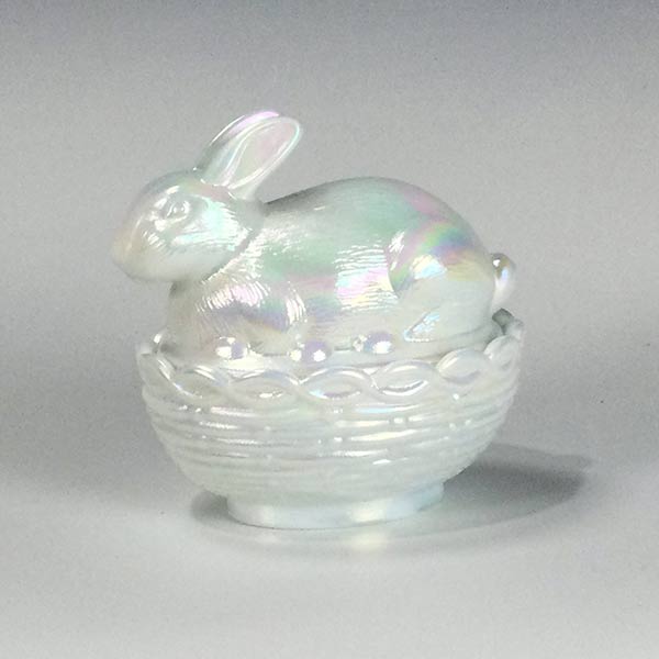 Bunny Basket in Milk White Carnival Glass by Mosser Glass The origins of Mosser Glass go back more than half