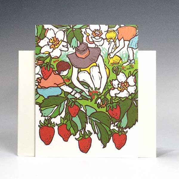Strawberry Pickingby Little GreenUsing quality, eco-friendly materials and featuring original design, this 4.5 x 5.5" blank card will allow you