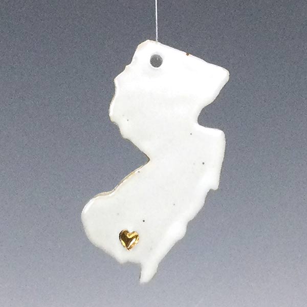 New Jersey Love Ceramic Ornament in Whiteby Phyllis Seidner3.5" long.Know someone whose heart is in South Jersey? White stoneware with