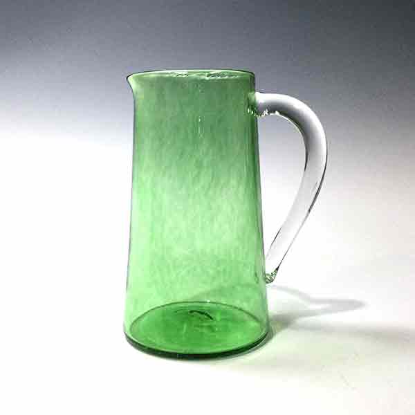 Green Glass Cylinder PitcherWheatonArts Glass Studio Contemporary cylinder pitcher in green with a crystal clear handle. Each one iscrafted in