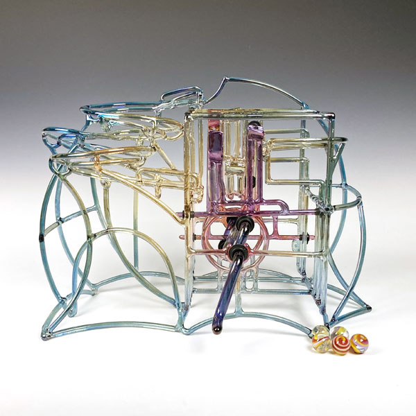 FRED #22 Marble Machine by Bandhu Dunham. FRED is an acronym for (Faith Reduces Energy Depletion). Lampworked Borosilicate Glass. 2025.