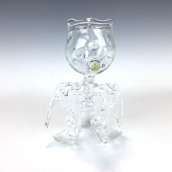 TORIROBO by Kentaro Yanagi. This delicate flameworked figure comes to life when you pick it up. Borosilicate glass. Measures 8"