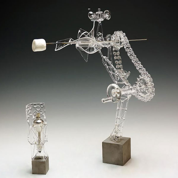 Marshmallow Roaster by Kentaro Yanagi. This delicate flameworked glass sculpture is a unique way to toast a marshmallow. Borosilicate glass.