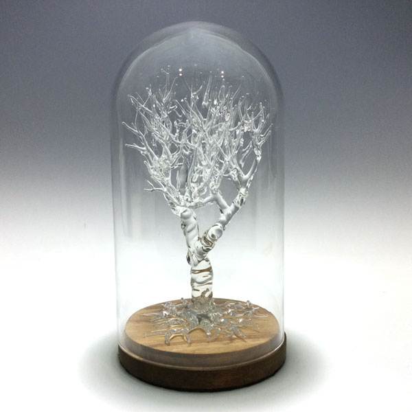 Tree Under Dome by Eunsuh Choi. Flameworked Borosilicate Glass Sculpture. Measures Approximately 10.5" h x 5" d. Dome is removeable.