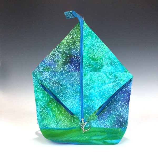 Green and Blue Batik Rucksack Backpack by Dots by the Bay. This versatile backpack can be opened up to create
