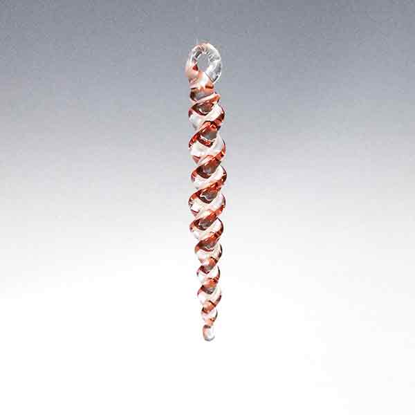 Red and White Flameworked IcicleVaried lengths, 4" - 4.75"Threads of red and white glass spiral through the length of this
