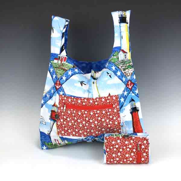 Lighthouse Eco Friendly Fold Up Market Bag by Dots by the Bay. The eco-friendly bag folds up for easy travel