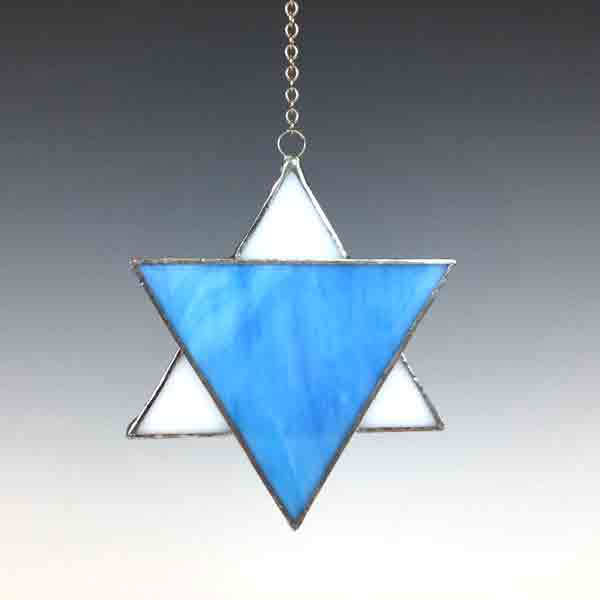 Star of David Suncatcher by John Marselis. This leaded stained glass Star of David is accented with colored glass in