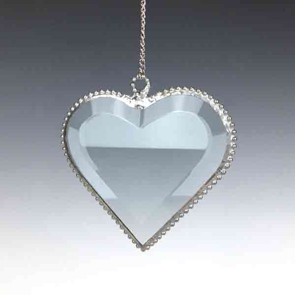 Beaded Heart Suncatcher by John Marselis. Clear glass suncatcher accented with a silver beaded edge. Display in a window and