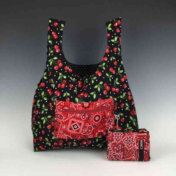Cherries and Red Bandana Eco Friendly Fold Up Market Bag by Dots by the Bay. The eco-friendly bag folds up