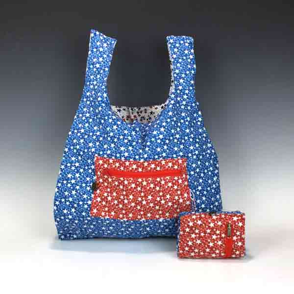 Red, White and Blue Stars Eco Friendly Fold Up Market Bag by Dots by the Bay. The eco-friendly bag folds