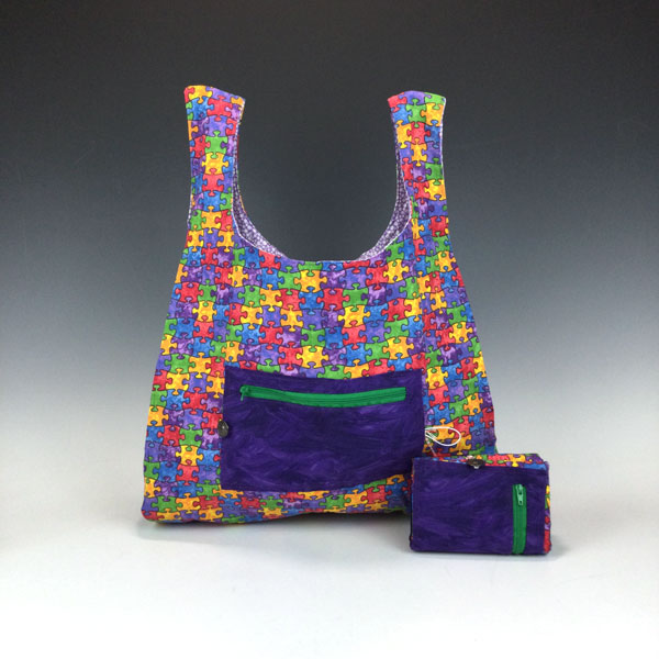 Puzzle Pieces Eco Friendly Fold Up Market Bag by Dots by the Bay. The eco-friendly bag folds up for easy