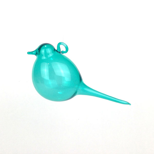 Aqua Blown Glass Bird Ornament by Rose & Thistle Glassworks. This handblown glass bird was handmade using the flameworking technique.