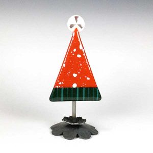 Fused Glass Tree Medium Red Holiday Green Band