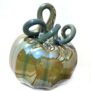 Glass Pumpkin with Recycled Cullet and Gold Iridiz