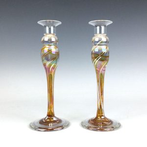 Candlestick Pair in Gold -Rosetree Glass Studio