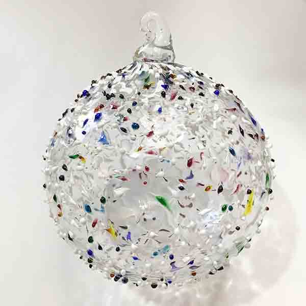 6″ Boyce Clear with Multicolor and White Raised Speckles Ornament