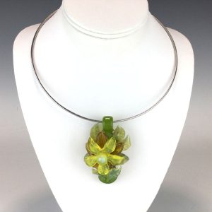 Christ started doing beading during her layovers while working as an Amtrak conductor, and from there went to the torch to make focal beads included in the beaded pieces.