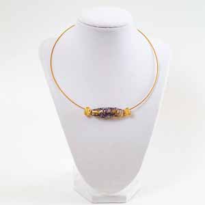 “Brown Barrel Clasp Necklace” by Chris Coffman, WheatonArts Flamework Artist. Handmade glass bead on Screw On Barrel Clasp Necklace. To open clasp, unscrew barrel. 18″ choker style stiff wire cord.