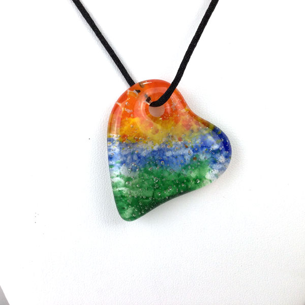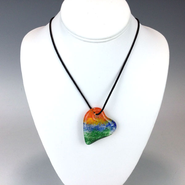 Colors of the rainblow accent this Cast Glass Heart Necklace.