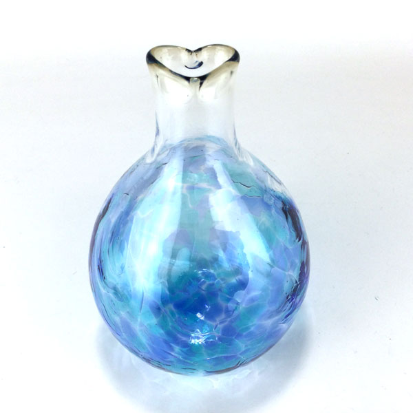 Circle of Friends “Serenity” Vase by Henrietta Glass. The top of the vase is in the shape of a heart. Each vase comes with a hand tag specific to its trait/color on a color coordinated satin ribbon and is packed in a gift box. Size: Approximately 4.5 inches tall, 3 inches in diameter.