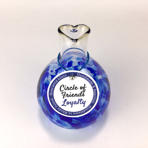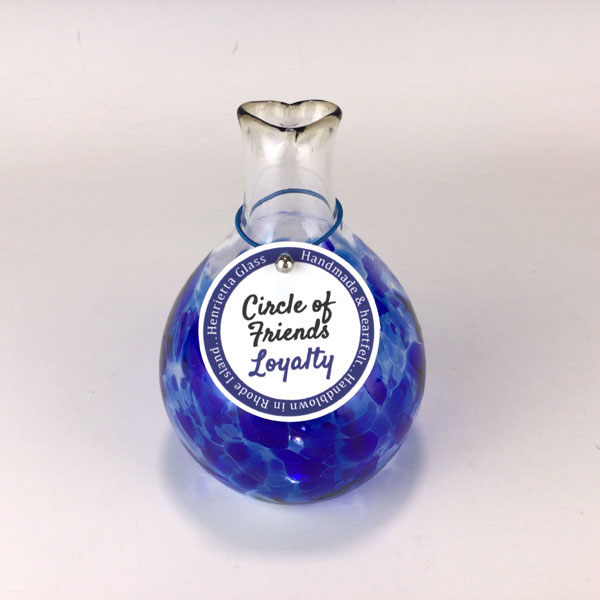 Circle of Friends Vase “Loyalty” by Henrietta Glass. Each vase comes with a hand tag specific to its trait/color on a color coordinated satin ribbon and is packed in a gift box. Size: Approximately 4.5 inches tall, 3 inches in diameter.