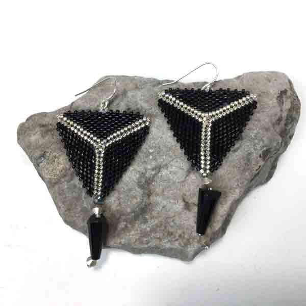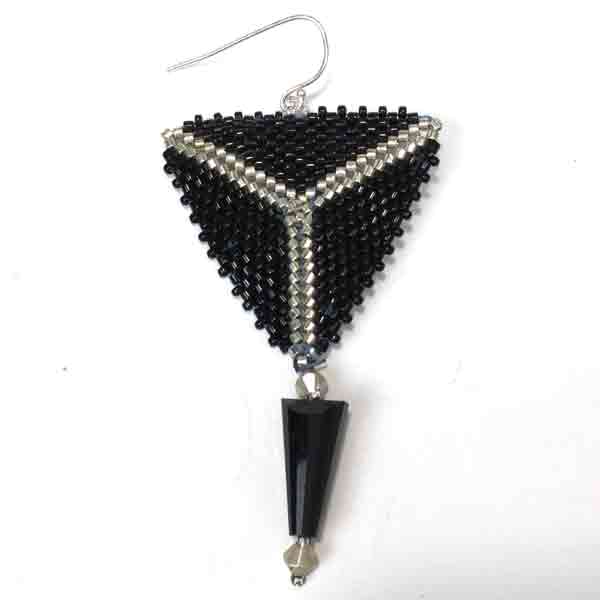 Black and Silver Arrow Beaded Earrings by Davala Designs. These earrings are handmade using a technique called “beadweaving” usings tiny glass beads and are accented with Swarovski Crystals. The earrwires are silver filled. They measures approximately 2.75″ long x 1.5″ wide.