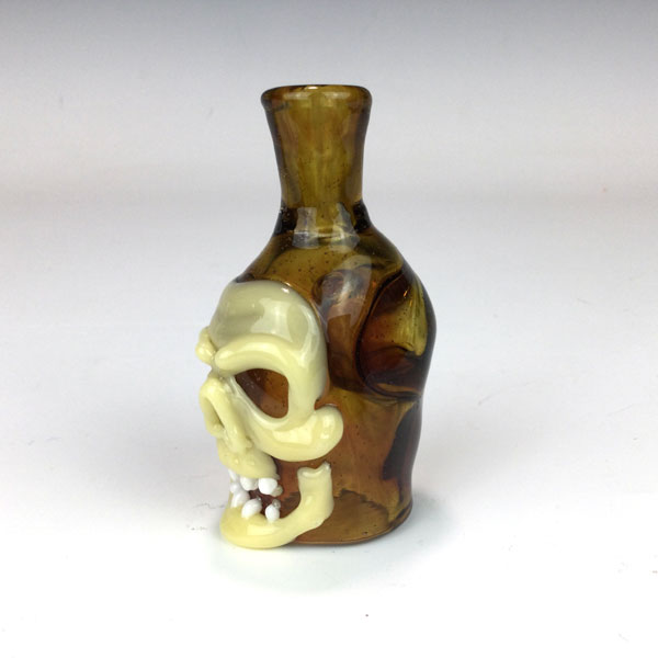 Death Whistle by Rocko Belloso. This flameworked glass Death Whistle is a contemporary take on the historical whistles and it works. The original ceramice Death Whistles were used by Aztec Warriors during battles to scare off and intimidate their foes. It measures 3″ h x 1.5″ w.