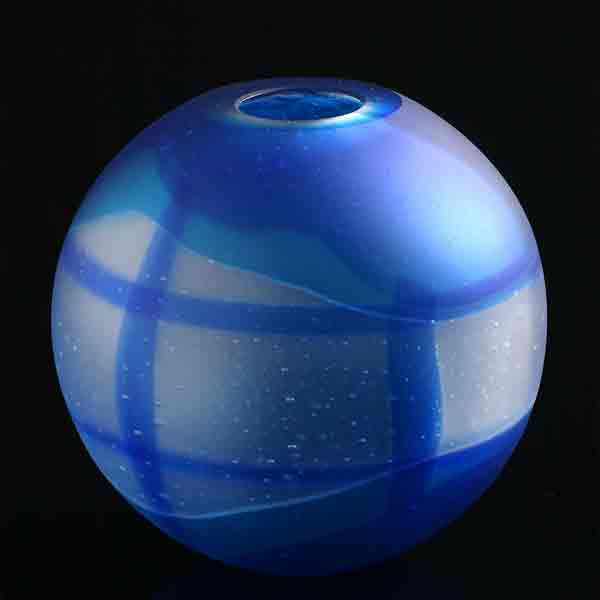 Kiln glass, blown. Measures Approximately 7″ high x 8″ diameter.