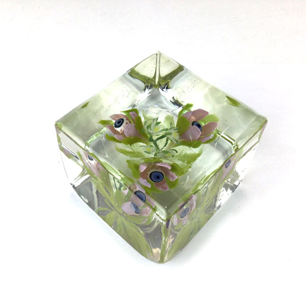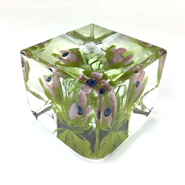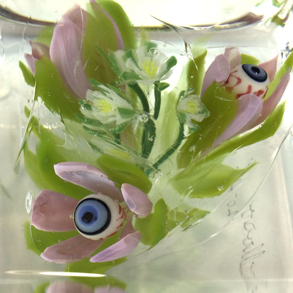 Gazing Flower Cube by Rocko Belloso. Three eyeballs stare back at you as you gaze into this cube. Signed. Measures approximately 2.75″ h x 2″ w.