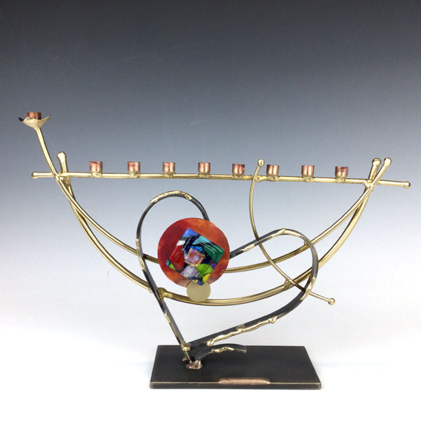 The team at the Gary Rosenthal Collection has been sculpting in welded metals since the early 1970s. This team of craftspeople creates a unique line of functional Judaic art. Copper, brass, steel, and stone are combined with vibrant fused glass. The Gary Rosenthal Collection has a contemporary style rooted in tradition. Inspiration comes from the rich history of the Jewish people, which tells us it's a blessing- a mitzvah- to make beautiful, functional art.