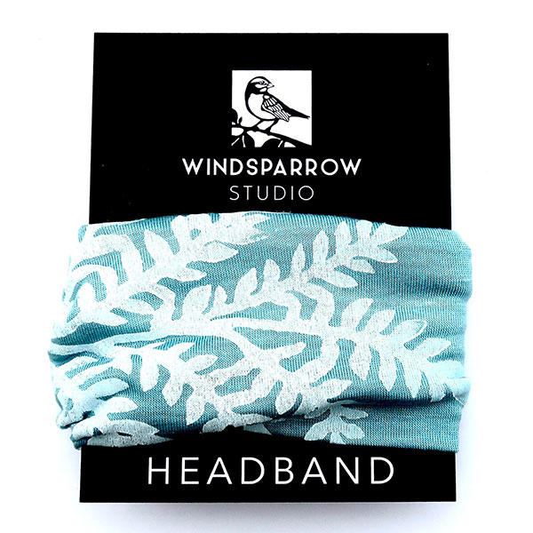 Lightweight jersey headbands featuring botanical floral patterns. Block Printed by custom linolium tiles. Soft jersey headbands are lightweight and strong. Great for daily wear, workouts, yoga class, dancing, gardening, and more. Headband width is adjustable when worn and showcases the design beautifully.