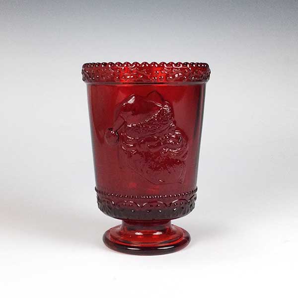 Welcome Santa and the holiday season into your home with the 8oz Santa's Milk Glass in transparent red. A vintage, embossed image of Santa smiles from either side of the decorative glass. A pedestal foot and beaded pattern around the top rim add to its festive nature. At 4.5″ tall it holds a generous glass of whatever beverage Santa may choose.