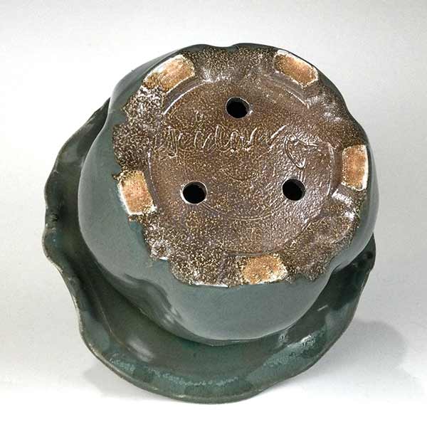 Warm colors and organic curves and tendrils make Phyllis' birdhouses appear to be growing in place. Measuring 10″ tall with a 7.5″ base diameter, and made in the WheatonArts pottery studio, they'll welcome your feathered friends in handcrafted style.