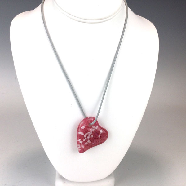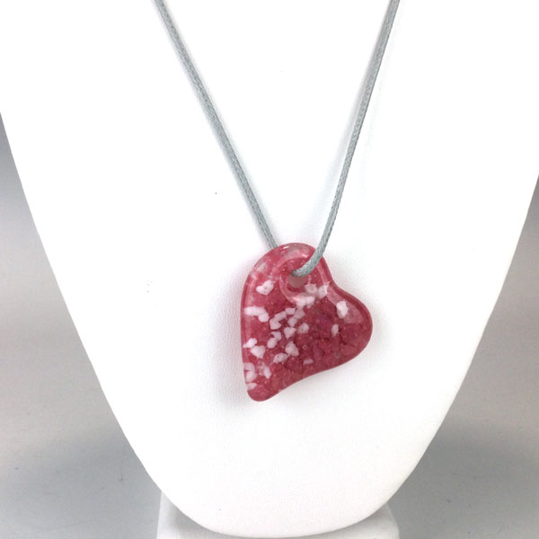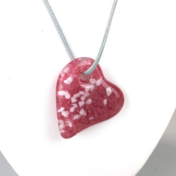 This cast glass Heart Necklace is a lovely shade of rosy pink.