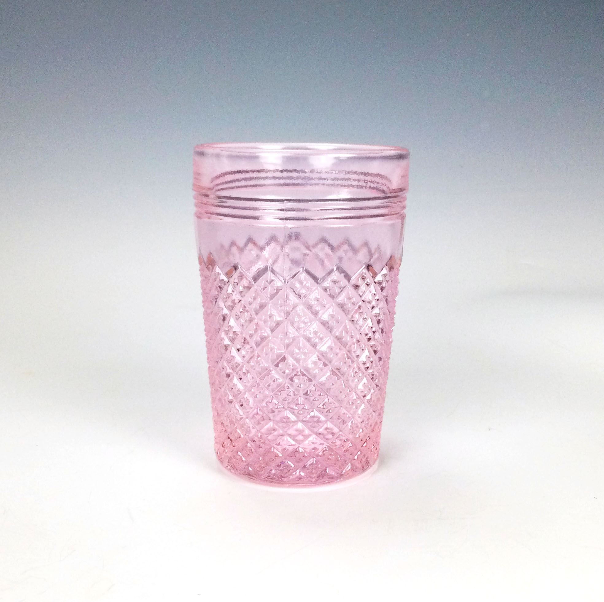 Pressed Glass Diamond Pattern Tumbler in Emerald Green