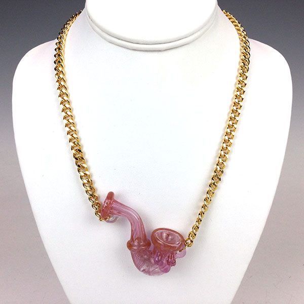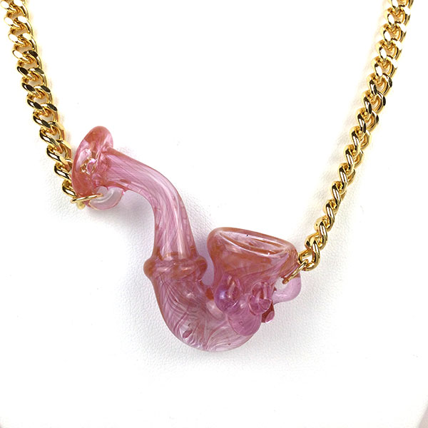 Sherlock Pipe Necklaceby Angela McHale. Flameworked glass pipe reminiscent of the one Sherlock Holmes smoked. Comes on gold tone chain.