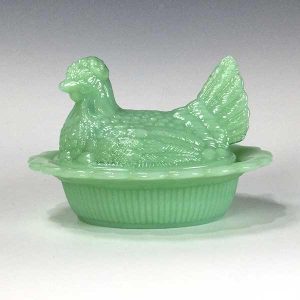 • Hen on Nest Jadeite Glass