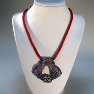 • Red and Orange Wig-Wag Pendant by Bill Futer